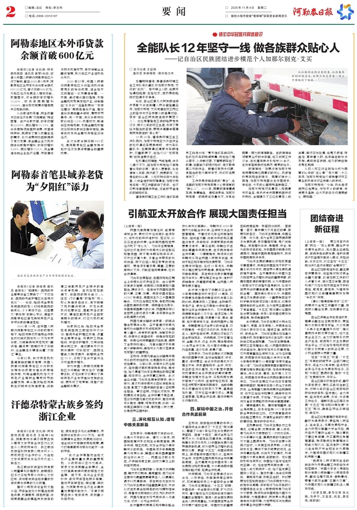 - 阿勒泰地区本外币贷款余额首破600亿元 本报讯(记者 古扎丽·阿布都热西提 通讯员 窦琴)近日,记者从中国人民银行阿勒泰地区分行了解到,截至2025年9月末,阿勒泰地区各项本外币贷款余额达607.33亿元,首次突破600亿