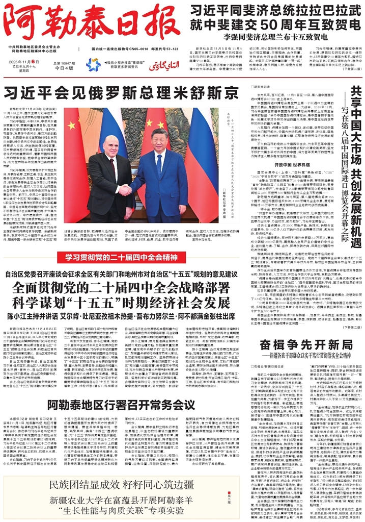 - 全面贯彻党的二十届四中全会战略部署 科学谋划“十五五”时期经济社会发展 新疆日报乌鲁木齐11月4日讯(石榴云/新疆日报记者 王兴瑞)自治区党委11月3日召开座谈会,深入学习贯彻党的二十届四中全会精神特别是习近