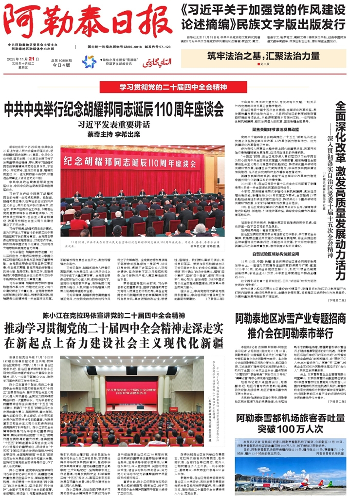 新华社北京11月20日电 中共中央20日上午在人民大会堂举行座谈会,纪念胡耀邦同志诞辰110周年。中共中央总书记、国家主席、中央军委主席习近平发表重要讲话强调,要认真学习胡耀邦同志的崇高精神风范和优良作风,不忘初心、牢记使命,坚定历史自信,增强历史主动,以一往无前的奋斗姿态扎实推进各项事业。(讲话全文见二版)