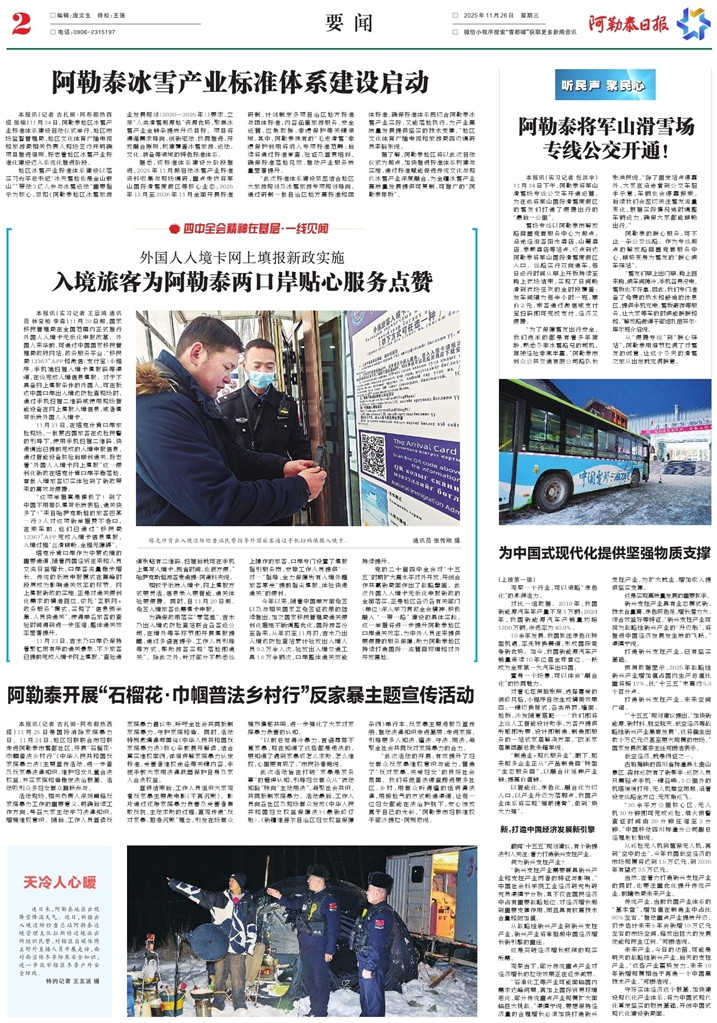 本报讯(实习记者 包洪宇)11月24日下午,阿勒泰将军山滑雪场专线公交车开通运营,为往返将军山国际滑雪度假区的雪友们打通了便捷出行的“最后一公里”。