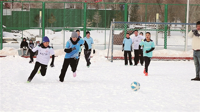 “这是我第一次参加雪地足球比赛,脚下的触感和在草地上完全不一样,很有挑战性!雪假里能和这么多小伙伴一起在冰雪里奔跑竞技,感受专属冬日的运动快乐,特别兴奋。”阿勒泰市第三中学学生马浩宇说。
