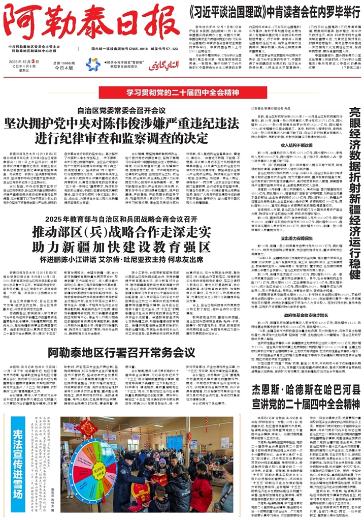 - 推动部区(兵)战略合作走深走实 助力新疆加快建设教育强区 新疆日报乌鲁木齐12月1日讯(石榴云/新疆日报记者 王兴瑞)12月1日,2025年教育部与自治区和兵团战略会商会议在乌鲁木齐召开。教育部