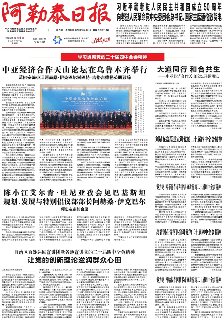 - 让党的创新理论滋润群众心田 □石榴云/新疆日报记者 按照自治区党委统一安排,连日来,学习贯彻党的二十届四中全会精神自治区百姓巡回宣讲团先后走进塔城地区、阿勒泰地区、昌吉回族自治州