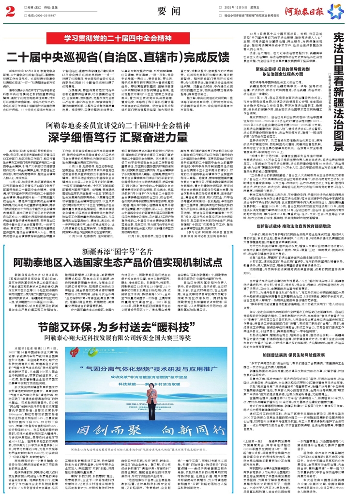 - 节能又环保,为乡村送去“暖科技” 本报讯(记者 张楠)12月4日,2025“第14届中国创新创业大赛”新能源、新能源汽车和节能环保全国赛在长沙落幕。来自阿勒泰的心翔大迈科技发展有限公司,凭借其自