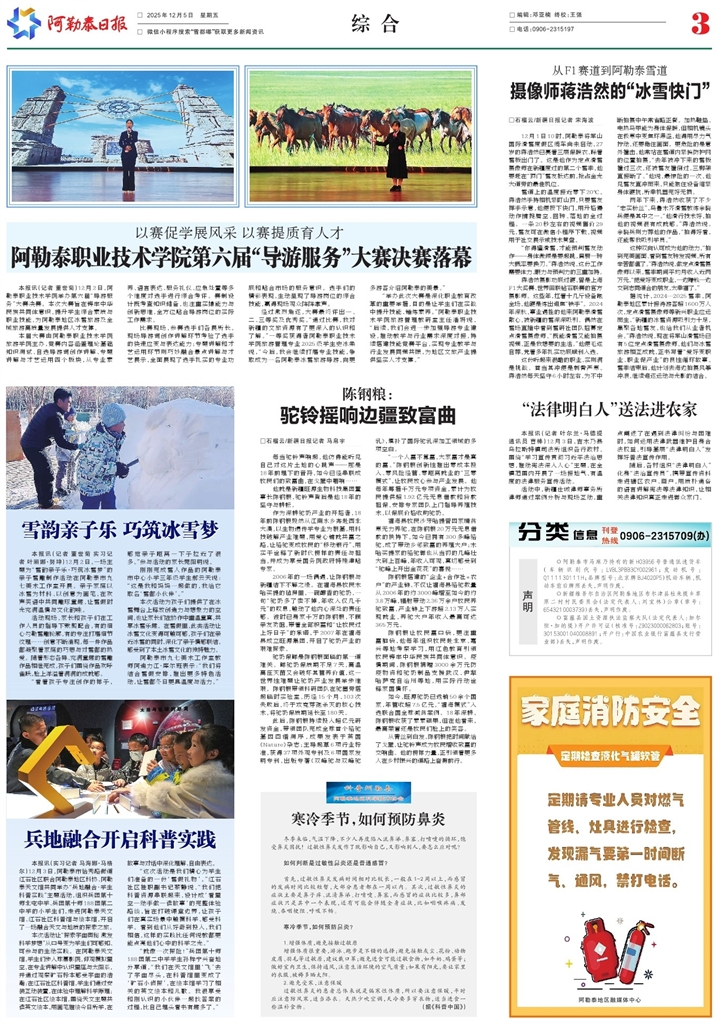 - 驼铃摇响边疆致富曲 □石榴云/新疆日报记者 马帛宇 每当驼铃声响起,他仿佛能听见自己对这片土地的心跳声——那是18年前埋下的音符,如今已经串联成牧民们的致富曲,在戈壁中唱