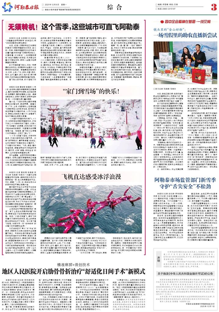 随着阿勒泰地区进入2025—2026冰雪旅游季,为满足旅客出行需求,提升入阿滑雪、赏雪体验,南方航空、国际航空、东方航空、四川航空、春秋航空、长龙航空、天津航空等多家航空公司近期密集宣布,加密阿勒泰雪都机场至全国主要城市的冬季航线航班频次,并同步推出一系列优惠政策,为游客奔赴“人类滑雪起源地”“中国雪都”铺就温暖便捷的空中通道。北京—阿勒泰:直飞航班频次增加,部分航司提供每日或多班次选择;上海—阿勒泰:在原有航线基础上增加班次,部分日期可覆盖早晚时段;广州/深圳—阿勒泰:直飞运力加大,为华南客源提供更充裕选择;成都、西安、郑州、重庆、兰州等主要城市:往返阿勒泰的航班均得到不同程度加密优化;同时,部分航司正积极评估开通或恢复更多二三线城市至阿勒泰的季节性直飞或包机航线(具体加密情况及新开航线请以航司官方发布为准)。
