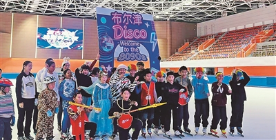 ↑布尔津县冰上运动中心“复古溜冰迪斯科之夜”活动现场。