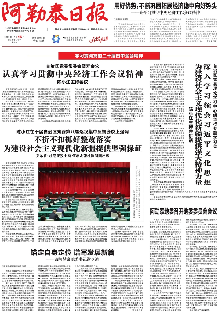 新疆日报乌鲁木齐12月12日讯(石榴云/新疆日报记者 王兴瑞)十届自治区党委第八轮巡视集中反馈会议12月12日召开,自治区党委书记陈小江出席会议并讲话,强调要深入学习贯彻习近平总书记关于党的自我革命的重要思想和关于巡视工作的重要论述,以全面从严治党永远在路上的坚韧和执着,不折不扣抓好整改落实,以实际成效践行政治忠诚、积极履职担当、回应群众期盼,为建设社会主义现代化新疆提供坚强保证。