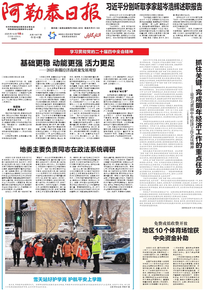 - 基础更稳 动能更强 活力更足 □石榴云/新疆日报记者 高峰 2025年是很不平凡的一年。在国际经贸形势更加复杂,全球经济增长乏力的背景下,我国经济顶压前行,延续总体平稳、稳中有进的