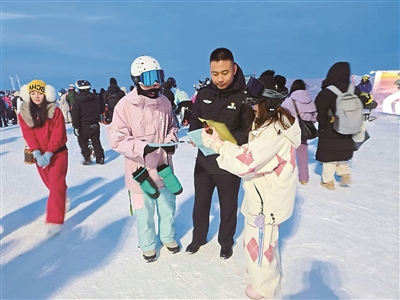 本报讯(记者 古扎丽·阿布都热西提 通讯员 洪辉晨)冬季的将军山国际滑雪度假区游人如织。在热闹的冰雪世界中,一场别开生面的反诈宣传活动悄然展开。连日来,阿勒泰市公安局解放路街道派出所创新形式,组织民警前往该度假区开展精准反诈宣传,以接地气的方式为游客送上反诈“防护盾”。