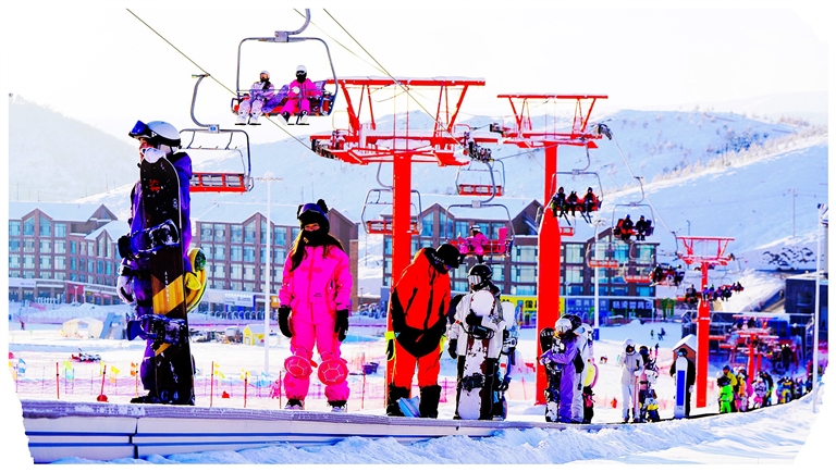 热气球与滑翔伞悠然浮游,为雪场添上一笔灵动。游人可乘缆车凌空而上,抬眼是逶迤雪山,垂眸是如画边城,辽阔天地尽入怀抱。在这里,每个人都能遇见属于自己的——北疆冬日里最清澈的一页浪漫。