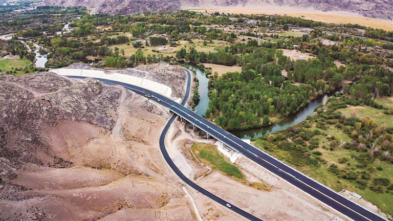 对于促进当地民生和经济社会发展,这条公路意义重大。它改变了原有低等级公路对沿线发展的制约,使塔克什肯口岸区及查干郭勒乡、阿尕什敖包乡等6个乡镇的居民出行条件得到根本改善,有效提高了运输效率。它还为沿线矿产、旅游资源开发注入强劲动力,助力青河县打造旅游品牌,形成乌鲁木齐经G7、S11至青河的快速旅游通道,串联起塔克什肯口岸、三道海子、青龙湖、青格里狼山等特色景区,进一步促进边境贸易繁荣,巩固脱贫攻坚成果,为乡村振兴、稳边固防和民族团结提供坚实的交通保障。