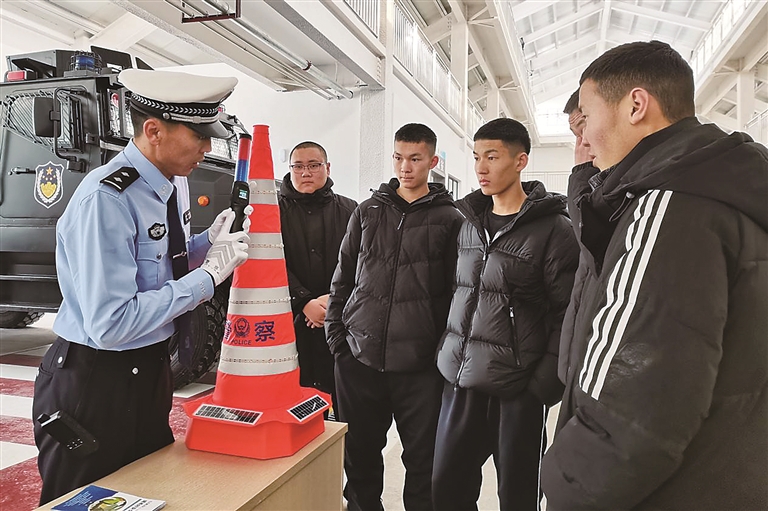青河县公安局训练馆内气氛热烈,警营开放日活动吸引了120余名学生沉浸式参与。活动设置了交通安全、警用装备、禁毒反诈等专区。VR醉驾体验让学生直观感受酒驾危害,民警将交通指挥手势融入舞蹈传递安全知识;驻地反侵袭演练与警犬技能展示环节震撼全场,让学生们深刻感受到公安队伍的过硬作风。