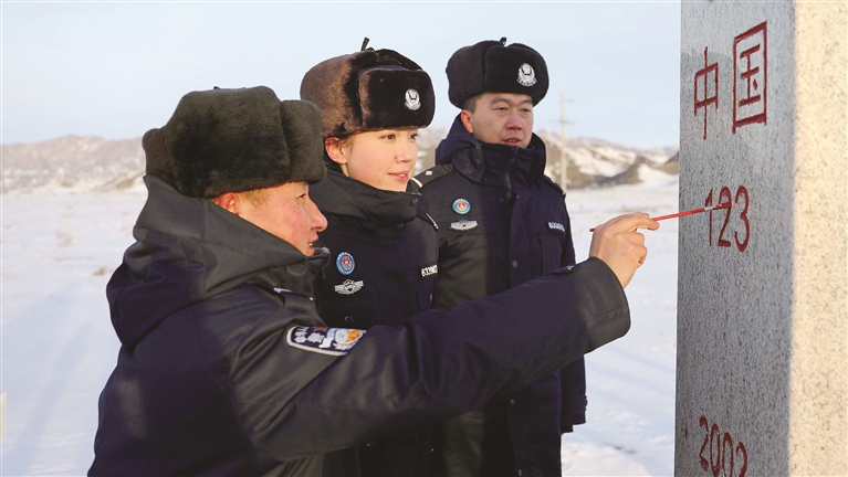 1月9日,在第六个中国人民警察节到来之际,塔克什肯出入境边防检查站在中蒙边境国门一线,组织开展“誓言映初心·忠诚护国门”系列主题庆祝活动,通过重温入党誓词、为界碑描红、与警旗合影等形式,激励全体民警牢记使命、忠诚履职。
