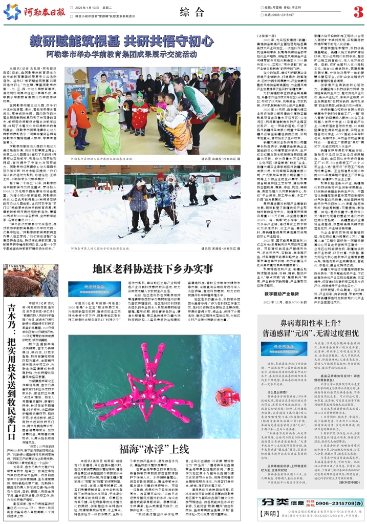 - 地区老科协送技下乡办实事 本报讯(记者 阿丽娜·阿依登)2026年是“十五五”规划开局之年。为培育新型农牧民,推进农牧业实用技术走进千家万户,阿勒泰地区老科技工作者协会服务团队以“科技之冬”活动为契机,围绕地区