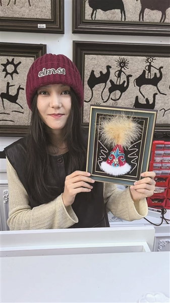 旅游热度的攀升,也带动了特色文创产品的持续走热。而地区对特色文旅业态的培育与扶持政策,为文创从业者搭建了施展才华的广阔平台。阿勒泰地区工艺美术协会成员陈娟,在阿勒泰市五百里风情街特色消费集聚区经营着新疆特产店与手工艺品店。得益于地区工会组织的手艺人走访对接活动以及文创产业扶持政策,她在技艺交流、产品推广等方面获得了支持。她以“人类滑雪起源地”岩画为灵感,采用本土毛毡全手工创作独一无二的作品。自今年2月开业以来,市场反响热烈,产品既受到本地居民的喜爱,也成为疆外游客青睐的伴手礼。“这里的文创市场刚刚起步,政策给了我们试错和成长的空间,未来潜力还很大。”陈娟表示,她正在根据游客反馈打磨迭代产品,“阿勒泰的美需要亲身体验,我想做出有温度的产品,为游客留下专属记忆,也想借着文旅发展的东风,把咱们本土的文创品牌叫响。”