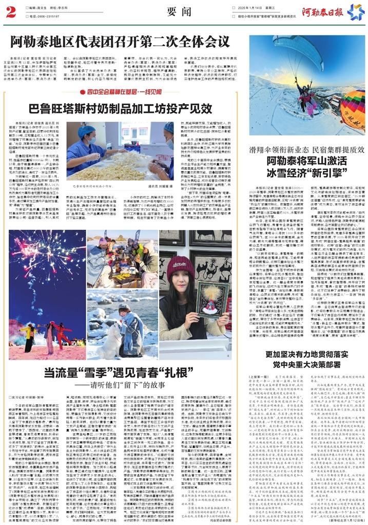 - 阿勒泰将军山激活 冰雪经济“新引擎” 本报讯(记者 董世菊 张涛)2025—2026年雪季,阿勒泰地区冰雪旅游热度持续攀升,凭借滑翔伞等潮流新业态与日趋完善的民宿酒店配套,实现“冷资源”向“热