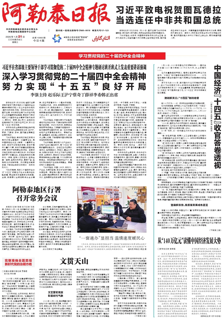- 阿勒泰地区行署 召开常务会议 本报讯(记者 张楠 实习记者 马海娜·马格尔)1月19日,地委副书记、地区行署专员杰恩斯·哈德斯主持召开地区行署常务会议,传达学习习近平总书记在二十届中央纪委五次全会上的重要讲话