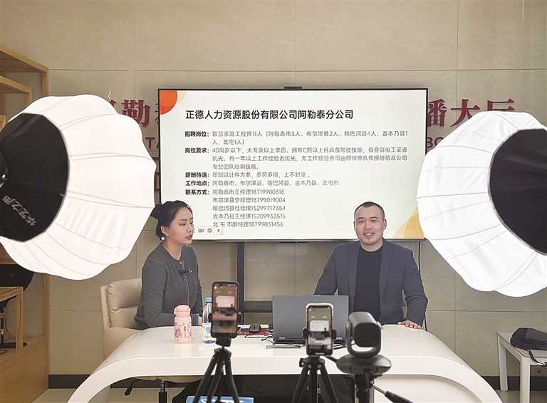 创新招聘模式成为本次活动的一大亮点。招聘会采用“现场招聘+直播带岗”线上线下同步推进的方式,打破时空限制,扩大服务覆盖面。无法到场的求职者通过扫描预约二维码,在线浏览企业岗位信息、投递简历,直播间内企业负责人化身“带岗主播”,详细介绍企业概况、用工需求和薪资福利,与网友实时互动答疑,让求职者足不出户就能“云选岗”“云应聘”。企业则通过“中国新疆人才网”发布岗位信息,高效对接意向人才。