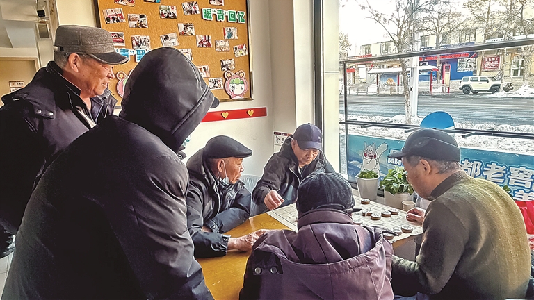 午后,驿站里格外热闹:老人凝神对弈,孩童围坐读书,外卖员充电热饭,滑雪游客整理装备……不同口音、不同职业的人们在这方温暖的空间里和谐相处。