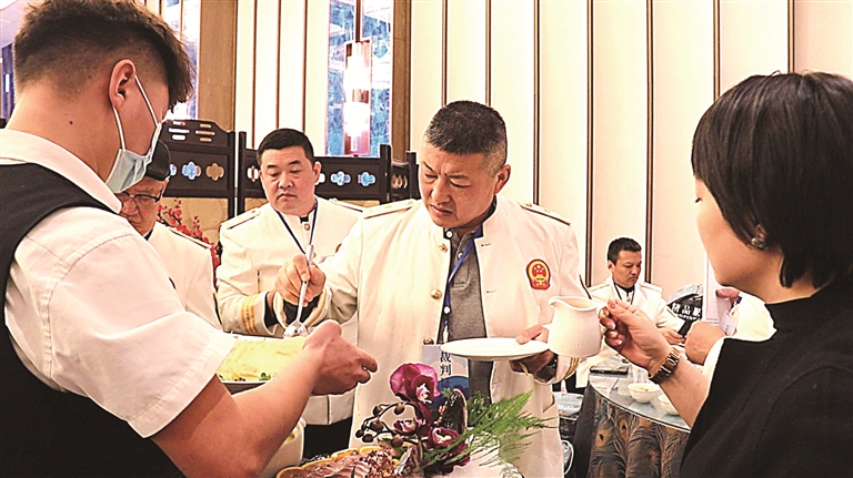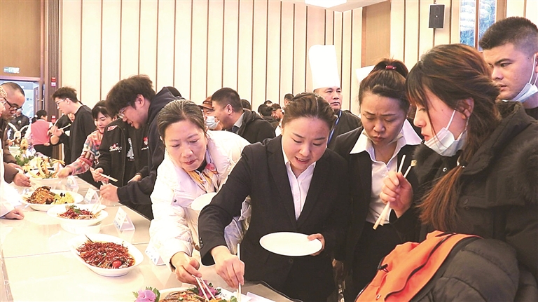 此次大赛邀请注册中国烹饪大师、注册中国元老级烹饪大师、注册国家级裁判员等5位行业权威人士组成评审团,现场对参赛菜品进行打分考评。经过激烈角逐,参赛作品“乌湖六韵——白斑狗鱼宴”凭借独特的创意、精湛的厨艺斩获冠军。