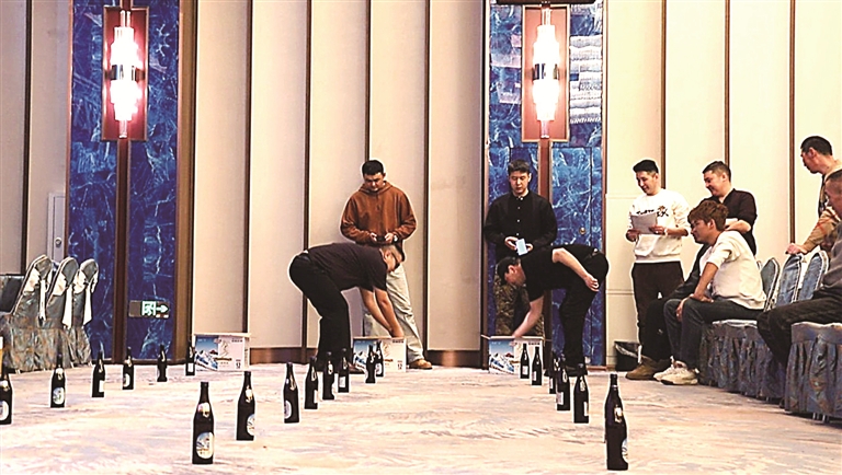 “鱼王大赛”后的“啤酒竞技”活动同样热闹非凡,参赛者在欢声笑语中比拼速度与酒量,引得现场观众欢呼呐喊。通讯员 柴林林 摄