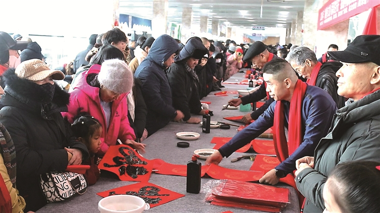 当日,来自阿勒泰地区的17名书法爱好者挥毫泼墨,将5600张遒劲灵动的“福”字带着墨香送到游客手中。