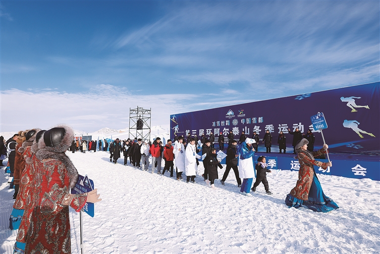 本报讯(记者 董世菊 张楠 张福新 阿尔达克·拜斯汗)冰雪为媒,丝路相连。1月27日,2026年第三届“冰雪丝路 中国雪都”环阿尔泰山冬季运动会在阿勒泰市萨尔阔布越野滑雪场开幕。来自中国、哈萨克斯坦等13个代表团的200名运动员、教练员齐聚“人类滑雪起源地”,共同开启一场融合竞技激情与人文温度的冰雪盛会。