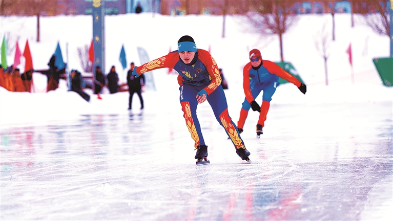 作为本届运动会三大核心项目之一,速度滑冰比赛设多个小项角逐。赛场上,冰刀划破冰面,留下一道道轨迹,运动员们身姿矫健、奋勇争先,转弯、加速、冲刺等动作行云流水,展现出高超的速滑技艺与顽强的拼搏精神,现场掌声与欢呼声此伏彼起。