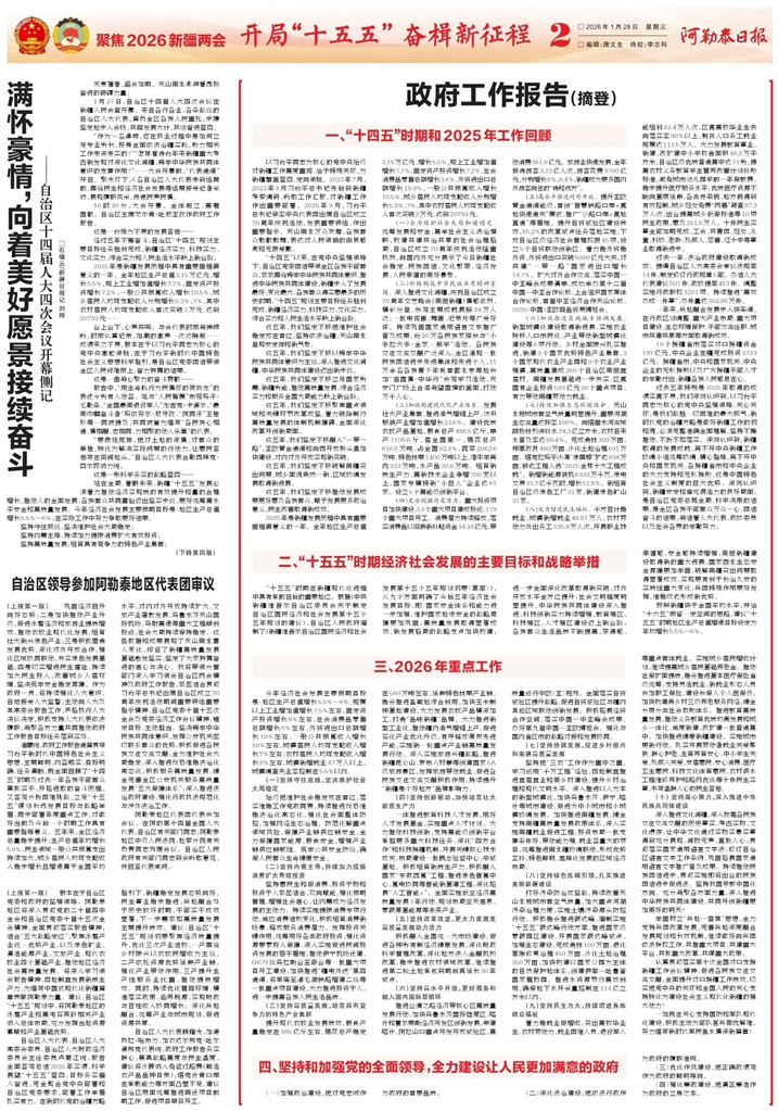 - 政府工作报告(摘登) 一、“十四五”时期和2025年工作回顾 “十五五”时期在新疆现代化进程中具有承前启后的重要地位。根据《中共新疆维吾尔自治区委员会关于制定自治区国民经济和社会发展第十五个五年规