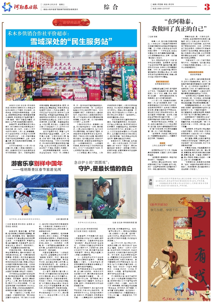 新春的禾木,风景如画、生机盎然。一间小小的平价超市,不仅守护着群众的“米袋子”“菜篮子”,更托举着游客的“暖身子”,承载着乡村振兴的美好希望,在雪域高原绽放出温暖而动人的时代光彩。