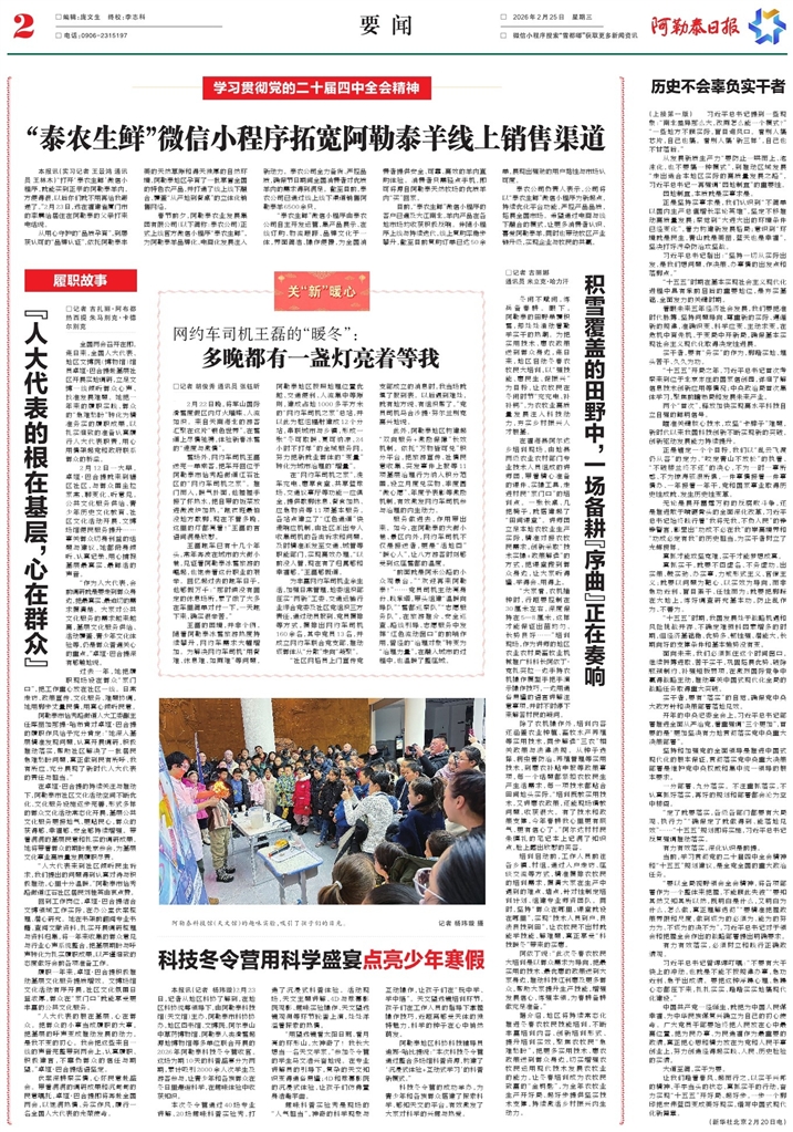 - “泰农生鲜”微信小程序拓宽阿勒泰羊线上销售渠道 本报讯(实习记者 王景鸿 通讯员 王林木)“打开‘泰农生鲜’微信小程序,就能买到正宗的阿勒泰羊肉,方便得很,以后你们就不用再给我寄递了。”2月23日,远在福建省厦门市的李震给居住在阿勒