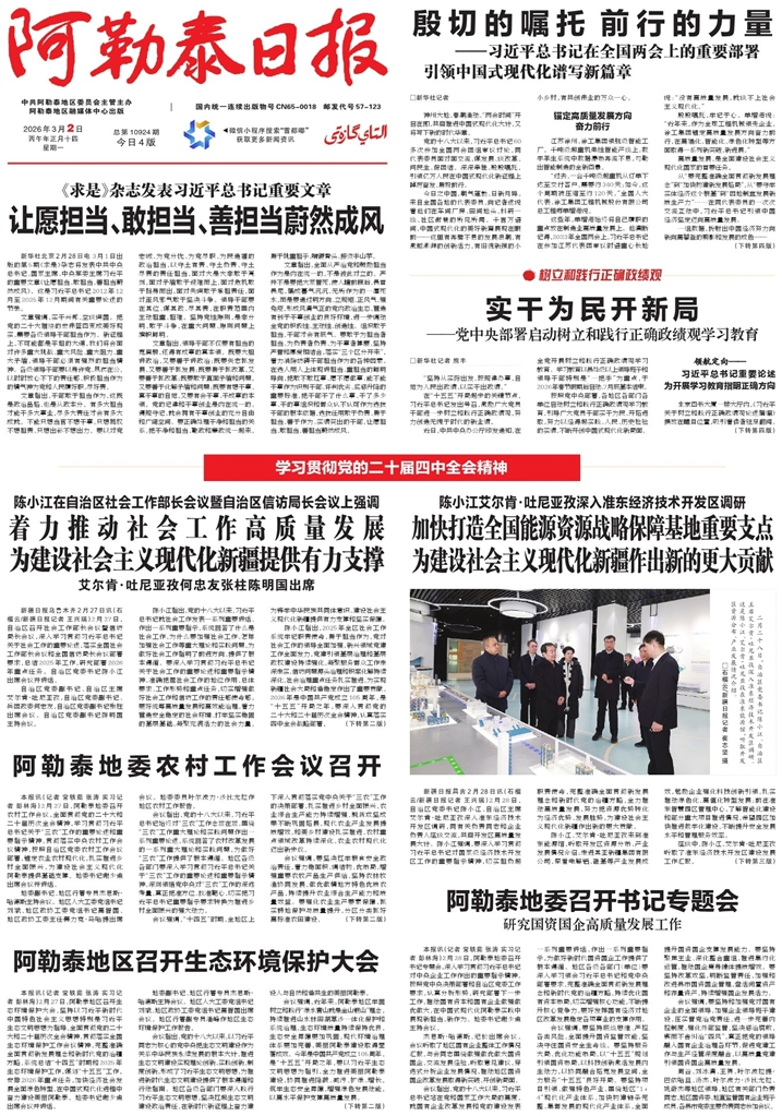 - 阿勒泰地委农村工作会议召开 本报讯(记者 常轶茹 张涛 实习记者 彭林海)2月27日,阿勒泰地委召开农村工作会议,全面贯彻党的二十大和二十届历次全会精神,学习贯彻习近平总书记关于“三农”工作的重要论述和重要指示精