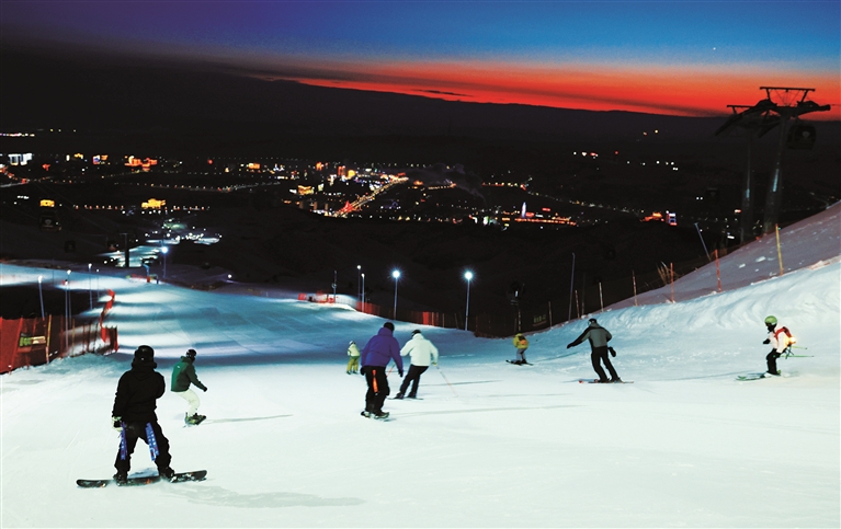 夜幕降临,雪都阿勒泰华灯初上,城市中的将军山国际滑雪度假区热力升腾。连日来,各地滑雪爱好者来到这里体验夜滑乐趣。