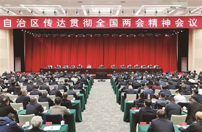 新疆日报乌鲁木齐3月14日讯(石榴云/新疆日报记者 王兴瑞)自治区传达贯彻全国两会精神会议3月14日召开。自治区党委书记陈小江主持会议并讲话,强调要深入学习贯彻全国两会精神特别是习近平总书记重要讲话精神,完整准确全面贯彻新发展理念和新时代党的治疆方略,牢牢扭住社会稳定和长治久安工作总目标,紧紧围绕铸牢中华民族共同体意识、推进中华民族共同体建设,锚定党中央赋予新疆的“五大战略定位”,扎实推动经济社会高质量发展,凝心聚力建设社会主义现代化新疆。