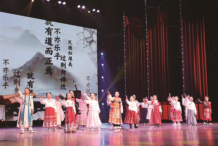 文艺展演精彩纷呈,将书香与艺术完美融合。经典诵读歌曲《子曰》古韵悠扬,展现中华优秀传统文化魅力;男声独唱《静静的阅读》深情动人,传递阅读的宁静与力量;诗歌朗诵《一路书香 一生阳光》慷慨激昂,抒发对知识与理想的追求;男声独唱《雪都阿勒泰》唱响家乡情怀,彰显地域文化特色;舞台剧《书遇千年:阿勒泰的古今阅读之约》创意十足,串联古今文脉,让观众沉浸式感受阅读之美。最后,民乐合奏《在希望的田野上》为整场活动画上圆满句号。