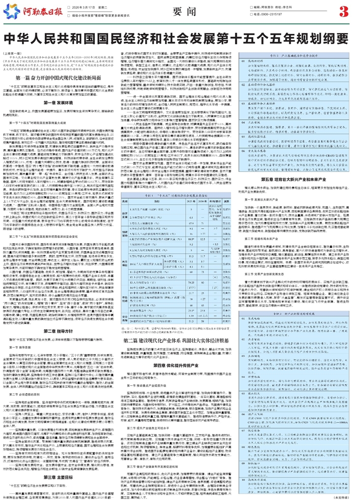 中华人民共和国国民经济和社会发展第十五个五年(2026—2030年)规划纲要,根据《中共中央关于制定国民经济和社会发展第十五个五年规划的建议》编制,主要阐明国家战略意图,明确政府工作重点,引导规范社会主体行为,是“十五五”时期我国全面建设社会主义现代化国家的宏伟蓝图,是全国各族人民共同的行动纲领。