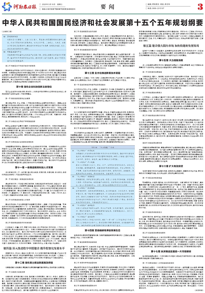 壮大数字经济核心产业,发展新一代通信技术、云计算、区块链等产业,提升高端芯片、光电子器件、基础软件和工业软件等产业水平,打造具有国际竞争力的数字产业集群。推进国家人工智能创新高地建设,培育智能原生新模式新业态,建设国家人工智能应用中试基地。促进制造业“智改数转网联”,实施智能制造工程和工业互联网创新发展工程,一体推进网络、标识、平台、数据、安全体系建设和规模化应用。推进服务业数智化,发展智慧农业。建设数智化转型促进网络,健全中小企业数智赋能服务体系。推进开源体系建设,完善开源运行机制。