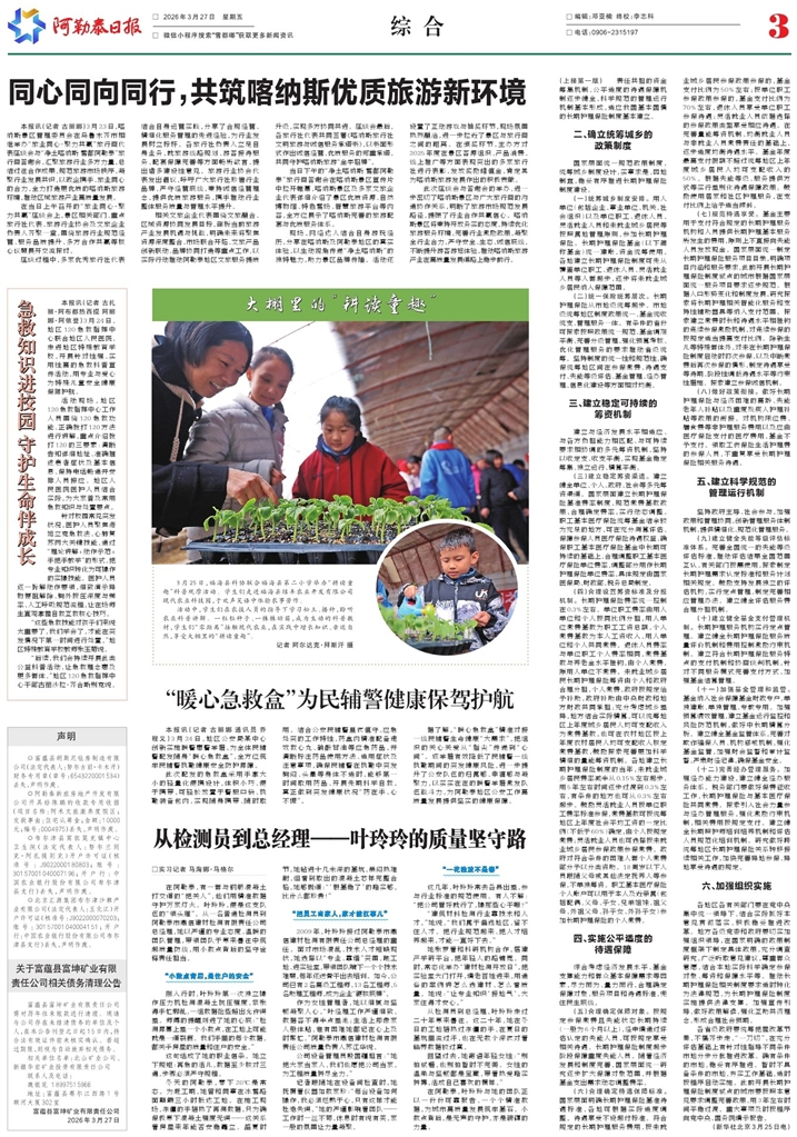 - 同心同向同行,共筑喀纳斯优质旅游新环境 本报讯(记者 古丽娜)3月23日,喀纳斯景区管理委员会在乌鲁木齐市相继举办“旅业同心·聚力共赢”旅行商代表座谈会与“净土喀纳斯 雪都阿勒泰”旅行商答谢会,汇聚旅游行业多方力量,总结过往