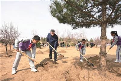 在京中共中央政治局委员、中央书记处书记、国务委员等参加植树活动。