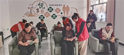 与此同时,山楂园社区依托可可明珠图书角,精心举办“书香润晚年”老年阅读分享会,为辖区老年人搭建起温馨的交流互动平台。活动现场,老人们围坐木桌旁,手捧书籍静静品读,时而细细翻阅书页沉浸于文字世界,时而轻声交流书中精彩片段,分享读书经历与人生感悟,言语间满是对阅读的热爱与对生活的热忱。身着红马甲的社区志愿者全程贴心陪伴,主动为老人讲解文字,耐心倾听他们的心声,现场氛围温馨融洽。此次分享会不仅为老人们带来了精神慰藉,更在互动交流中拉近了邻里距离、传递了社区温情,进一步提升了老年群体的幸福感与归属感。