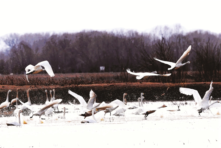 四月,阿勒泰科克苏湿地国家级自然保护区内,天鹅与白鹭成群而至,为春日平添一抹灵动生机。它们时而翩然起舞,时而静立水中,与金黄芦苇、澄澈水面相映成趣。